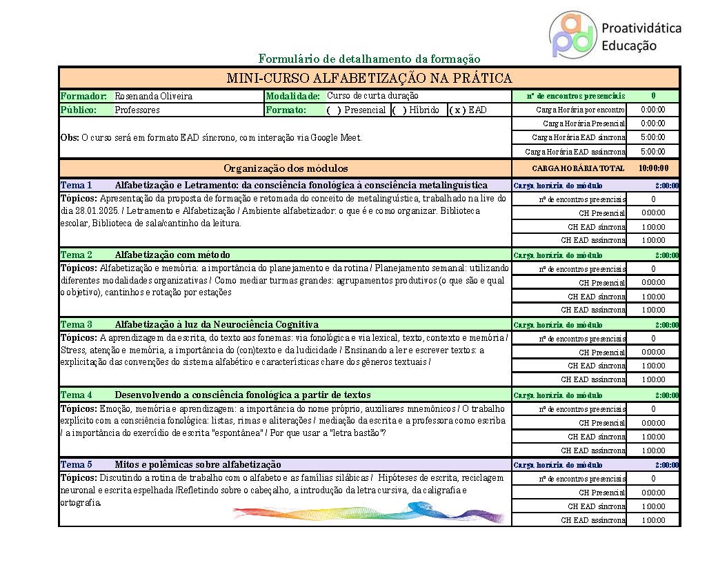 Web minicurso "Alfabetização na prática" (via Google Meet):