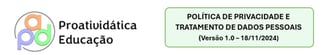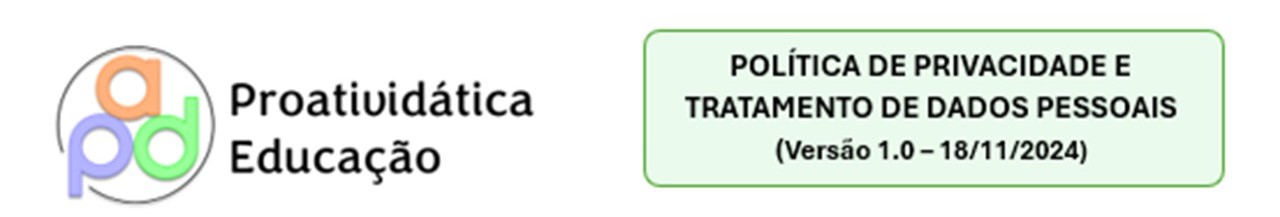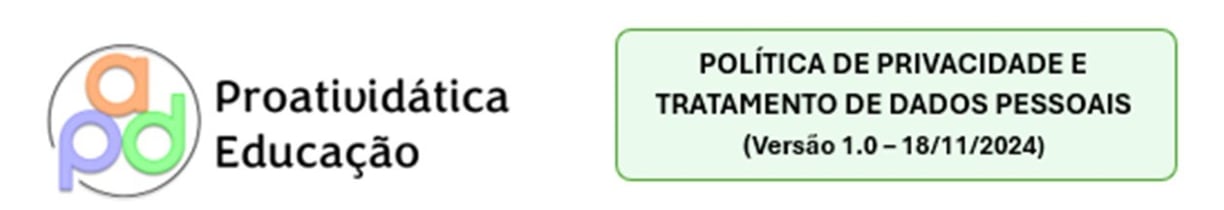POLÍTICA DE PRIVACIDADE E TRATAMENTO DE DADOS PESSOAIS DA PROATIVIDÁTICA EDUCAÇÃO